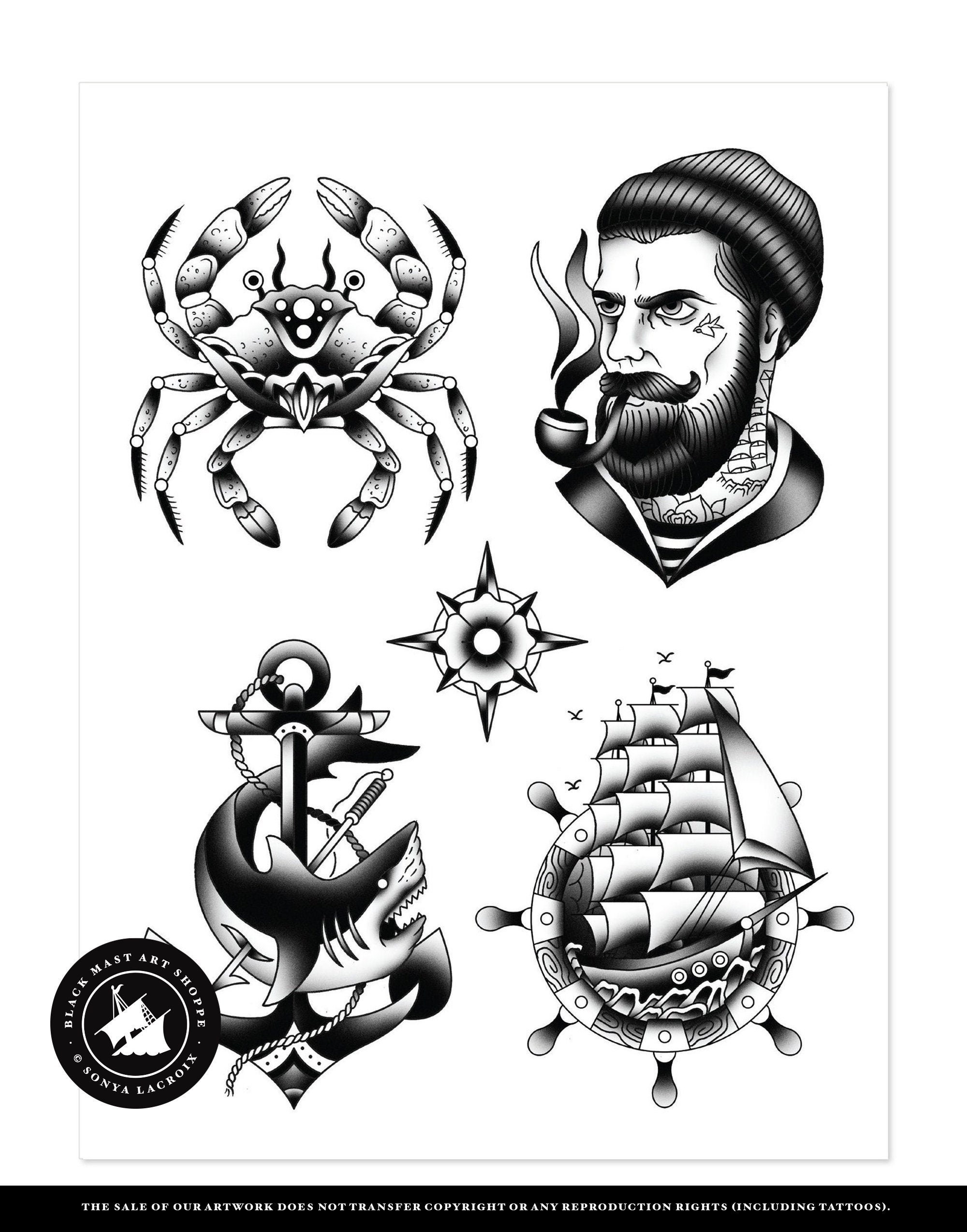 Maritimes Flash Set Krabbe Matrose Hai Schiff Etsy De